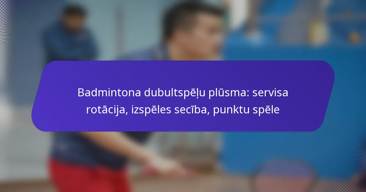 Dubultā badmintonā ir strukturēta spēles plūsma, kas ietver servēšanas rotāciju, izspēles secību un punktu spēli. Servēšanas rotācija nodrošina taisnīgumu, ļaujot spēlētājiem mainīties vietām, kamēr izspēles secība nosaka, kā komandas mijiedarbojas spēles laikā. Šo elementu apgūšana, kopā ar efektīvu komunikāciju un stratēģiju, ir būtiska, lai maksimizētu punktu gūšanas iespējas un sasniegtu panākumus laukumā.
