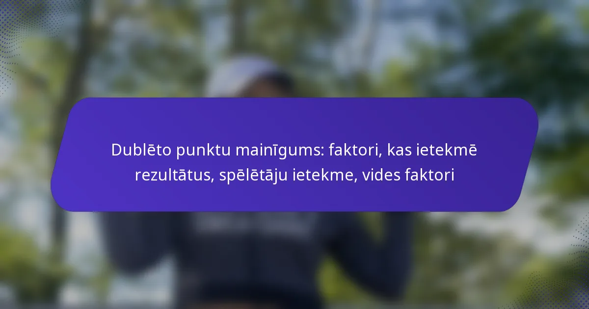 Dubultspēļu punktu mainīgumu ietekmē vairāki galvenie faktori, tostarp izmantotie noteikumi un punktu skaitīšanas sistēmas, atšķirības starp dubultspēlēm un vienspēlēm, spēlētāju stratēģijas, komandas darbs un statistikas tendences. Šo elementu izpratne var palīdzēt spēlētājiem un treneriem optimizēt sniegumu un pielāgot pieejas spēļu laikā.